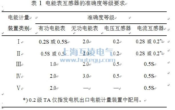 表 1電能表互感器的準確度等級要求